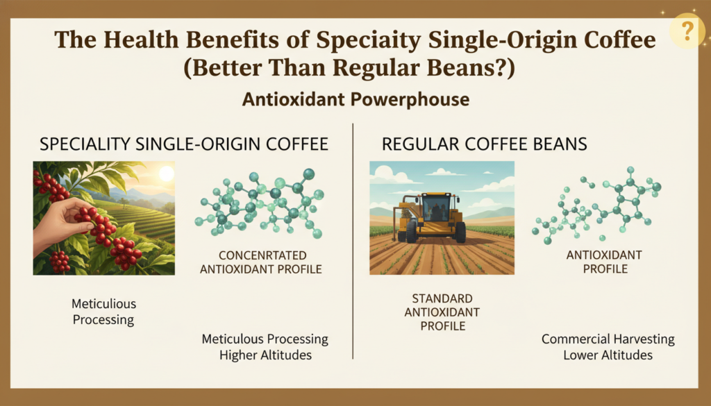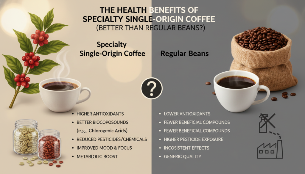 Specialty single-origin coffee is a game-changer! Not only does it offer a richer, more complex flavor profile, but it’s also packed with health benefits. Since it’s made from high-quality Arabica beans, it’s lower in caffeine and higher in antioxidants compared to regular coffee .